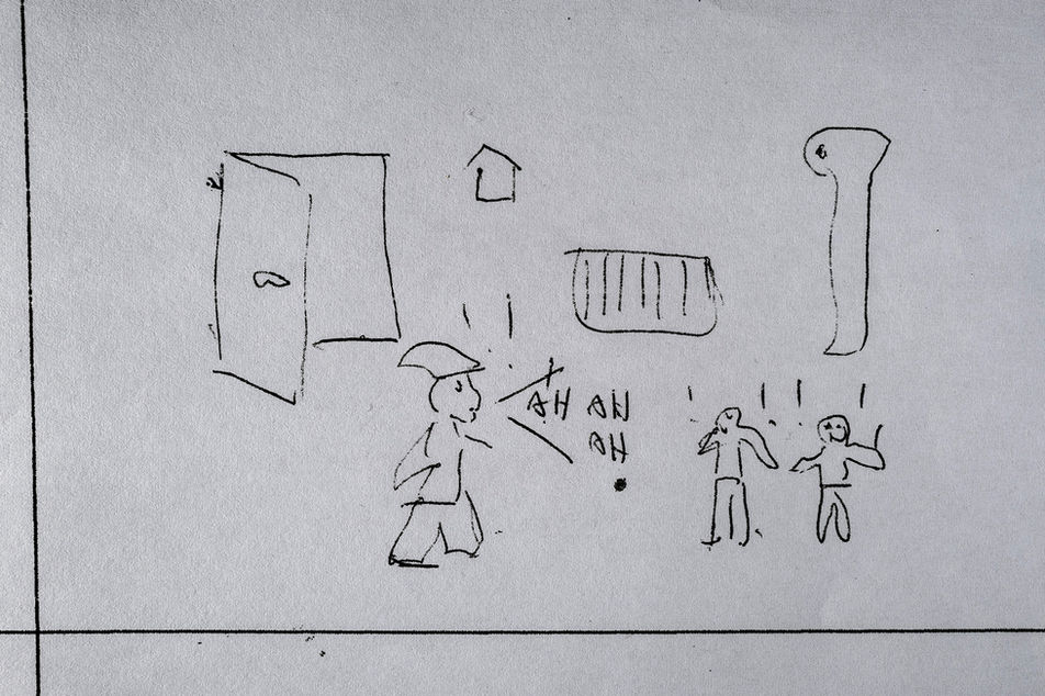 The drawing depicts a doctor who returns to his home advising his children not to go near him due to the Covid pandemic. The drawing was made during EMDR therapy between a patient and Dr. Elisa Fogliato from Lecco.